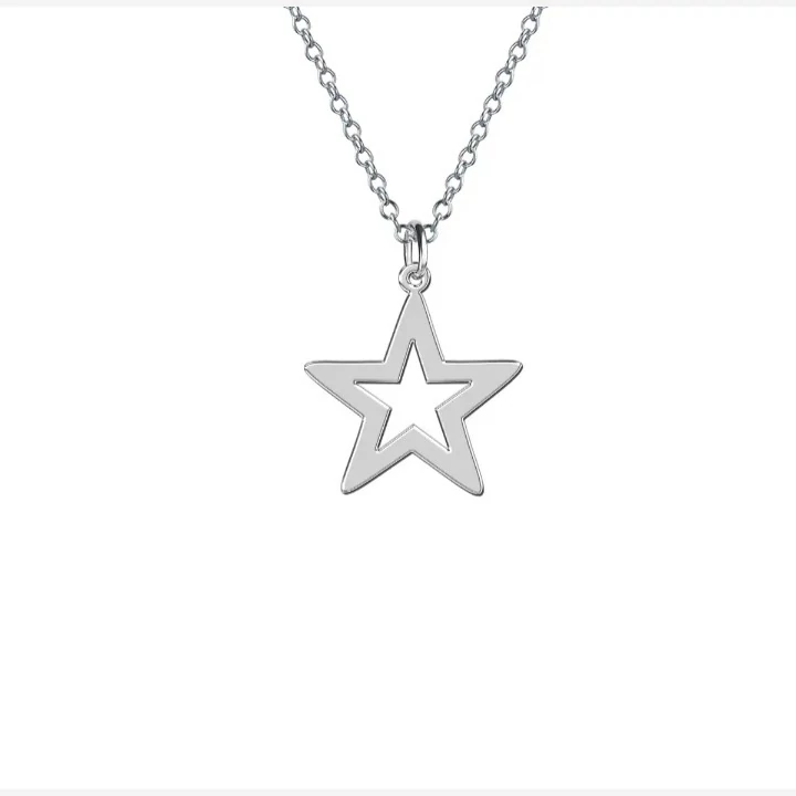 پلاک گردن بند نقره زنانه طرح ستاره توخالی همراه با زنجیر نقره