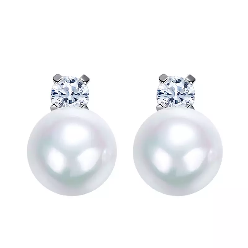 گوشواره نقره ابکاری رودیوم کارشده با مروارید و موزانایت