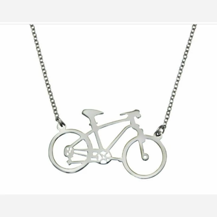 گردنبند نقره مدل دوچرخه کارشده با نقره عیار 925 متصل به زنجیر نقره عیار 925 کار اسپرت