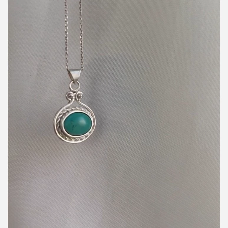 پلاک گردن بند نقره کارشده با نقره عیار 925 و نگین الکساندریت سنتاتیک