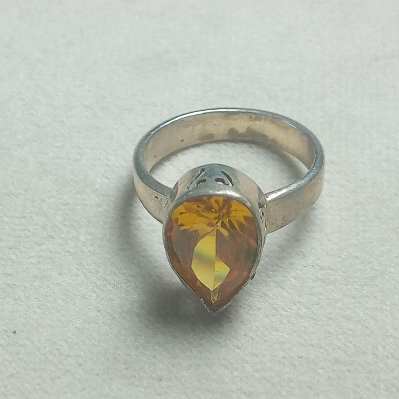 انگشتر نقره زنانه نگین طلایی رنگ بسیار زیبا