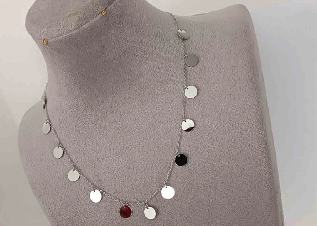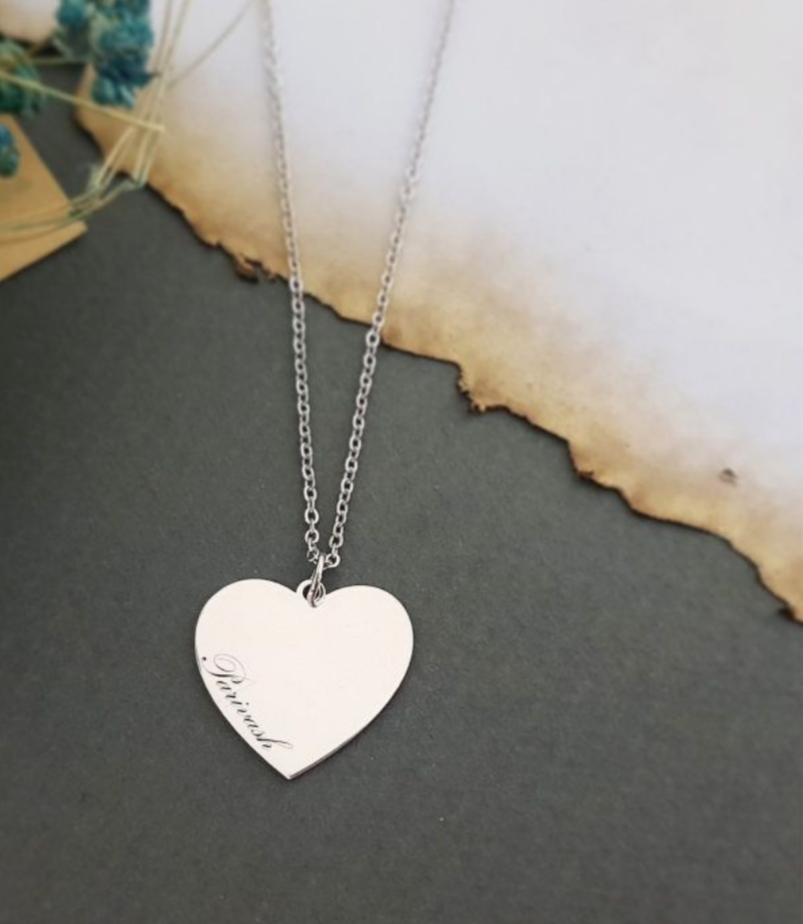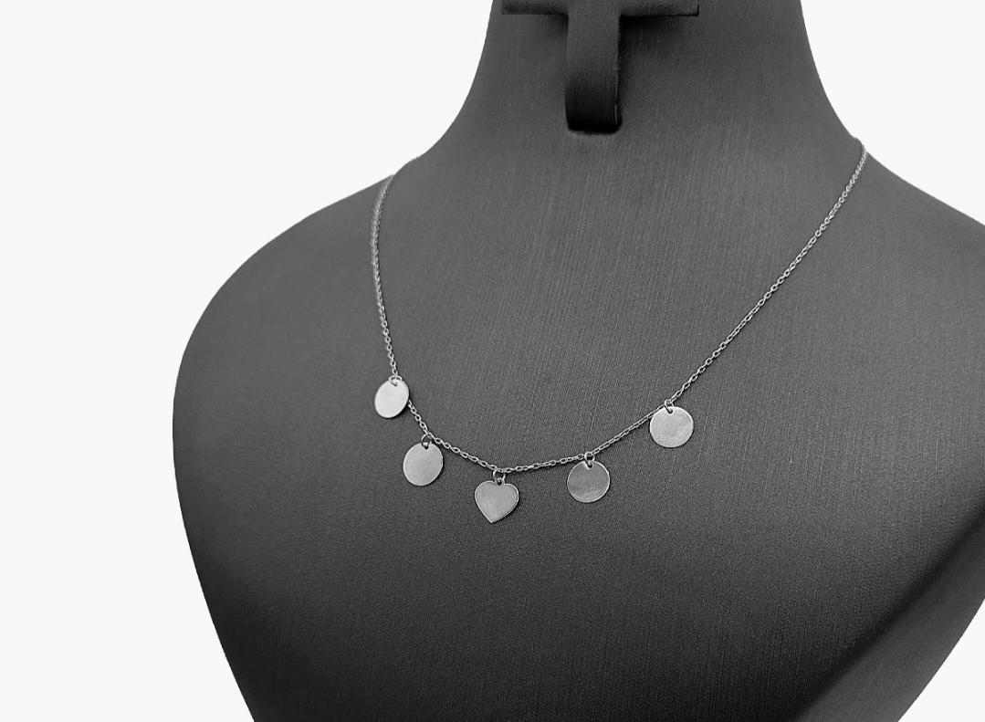 گردنبند نقره زنانه مدل اویز پولکی و قلبی