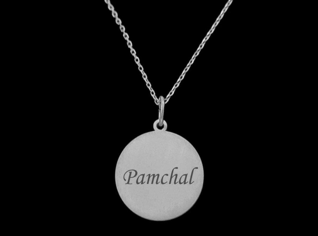گردنبند نقره دایره ای شکل با حکاکی اسم پامچال یا حکاکی اسم به دلخواه شما همراه با زنجیر نقره عیار ۹۲۵