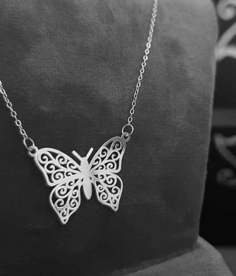 گردنبند زنانه نقره مدل پروانه زیبا همراه با زنجیر نقره عیار 925