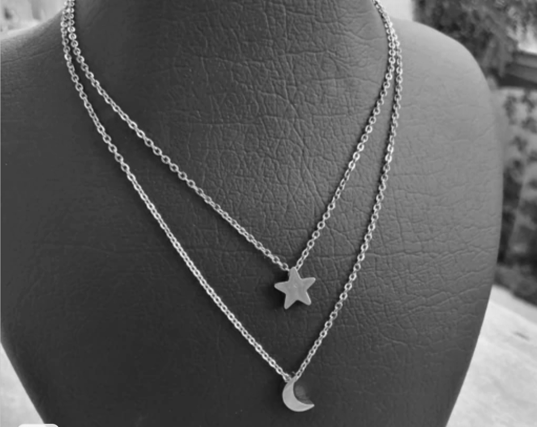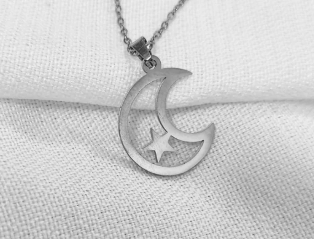 پلاک زنجیر نقره مدل ماه و ستاره بسیار زیبا