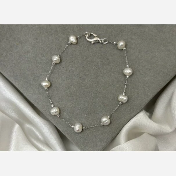 دستبند مروارید پرورشی طبیعی و نقره عیار 925