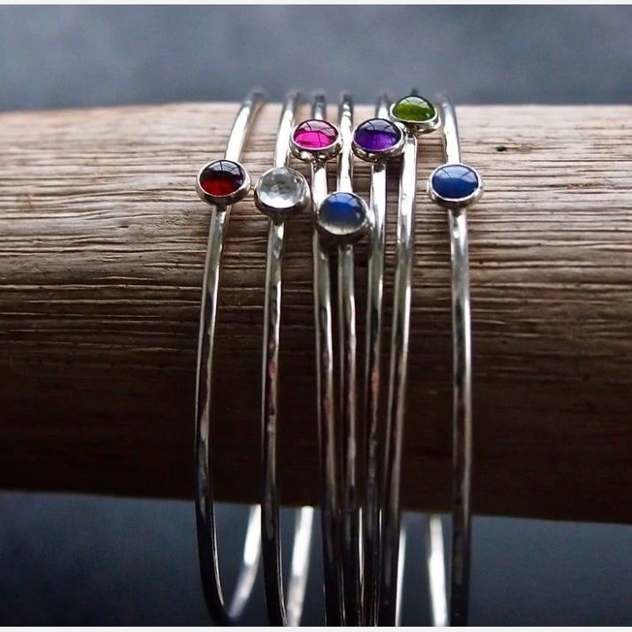 دستبند نقره زنانه 9 جواهر کار شده با 9 عدد نگین طبیعی و معدنی