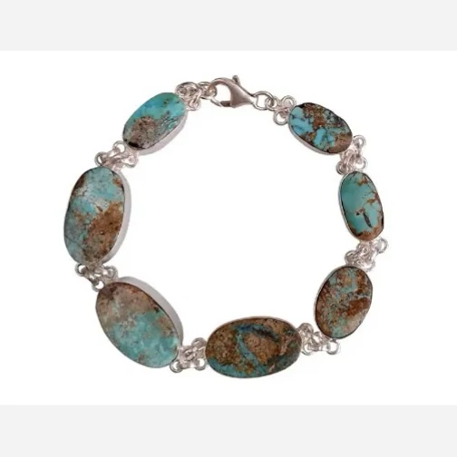 دستبند فیروزه زنانه کار شده با فیروزه و نقره عیار 925