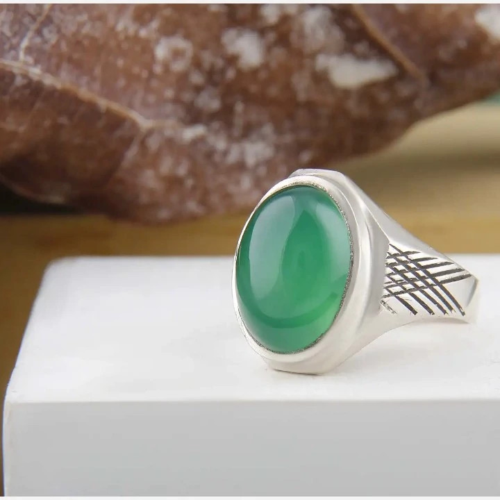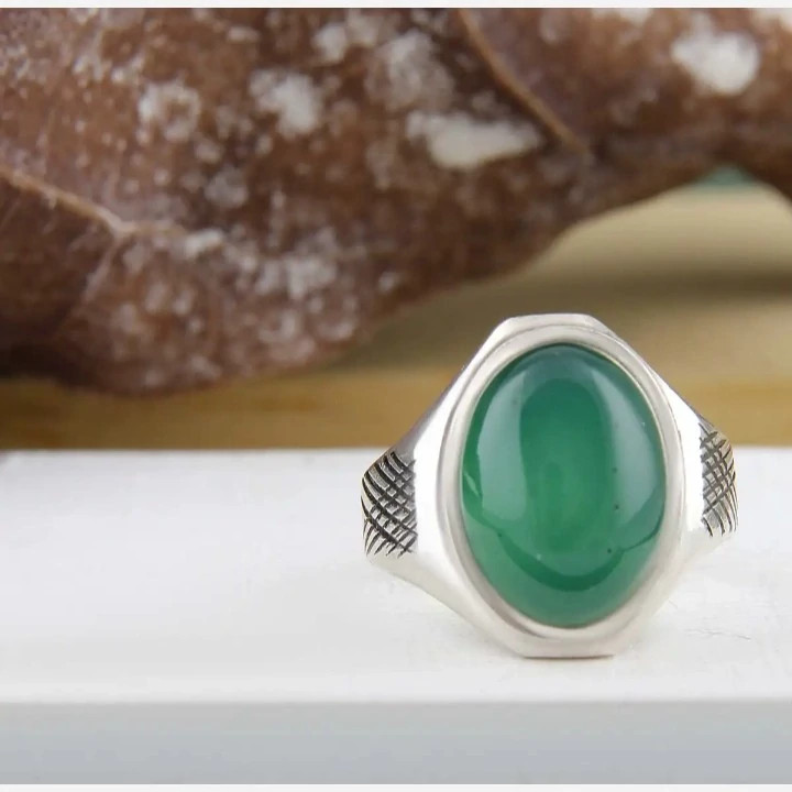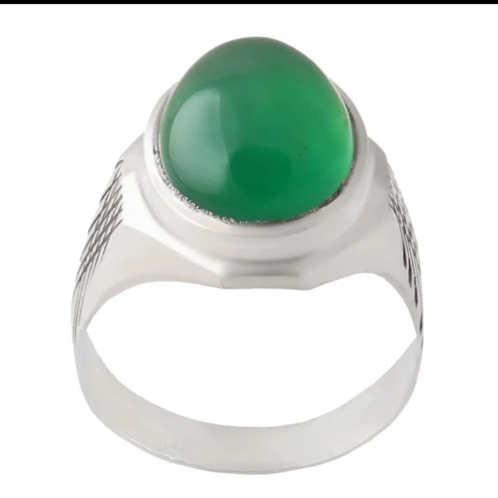 انگشتر مردونه عقیق سبز رکاب بغل طرح دار نقره عیار 925