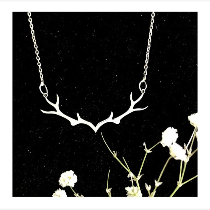 گردنبند نقره زنانه طرح شاخ گوزن متصل به زنجیر کار شده با نقره عیار 925 کار بسیار خاص و جدید طرح لیزری مدل شاخ گوزن از جنس نقره متصل به زنجیر نقره عیار 925 وزن حدودی اینکار ۴ گرم میباشد