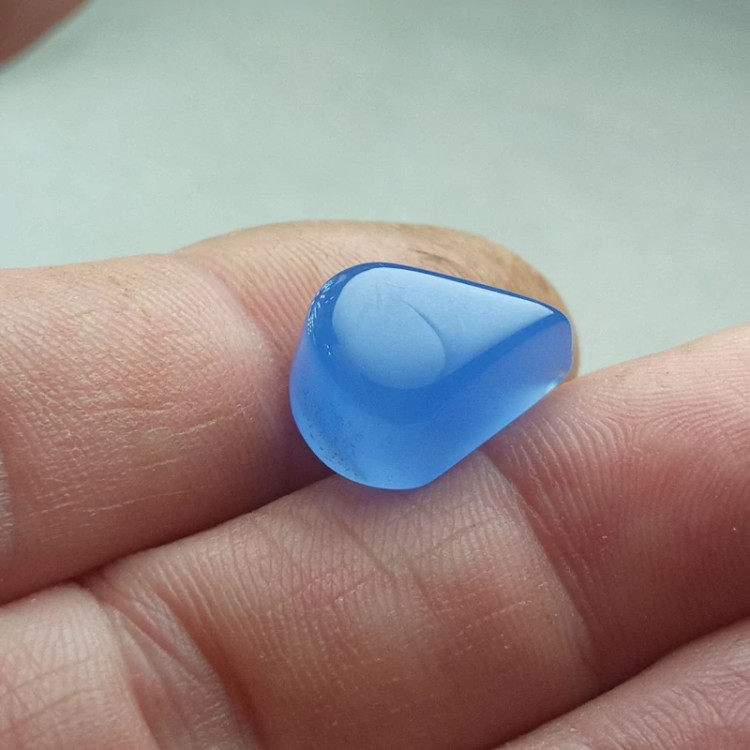 نگین عقیق ابی تراش اشکی فوق العاده زیبا