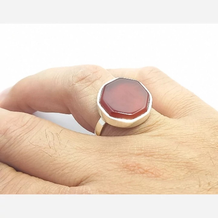 انگشتر عقیق سرخ مردانه نگین خانه هشت ضلعی نقره عیار 925