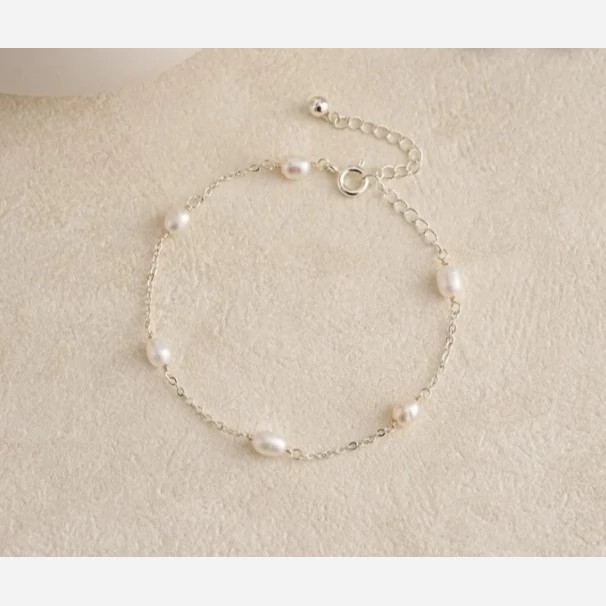 دستبند زنانه مروارید پرورشی طبیعی و نقره عیار 925