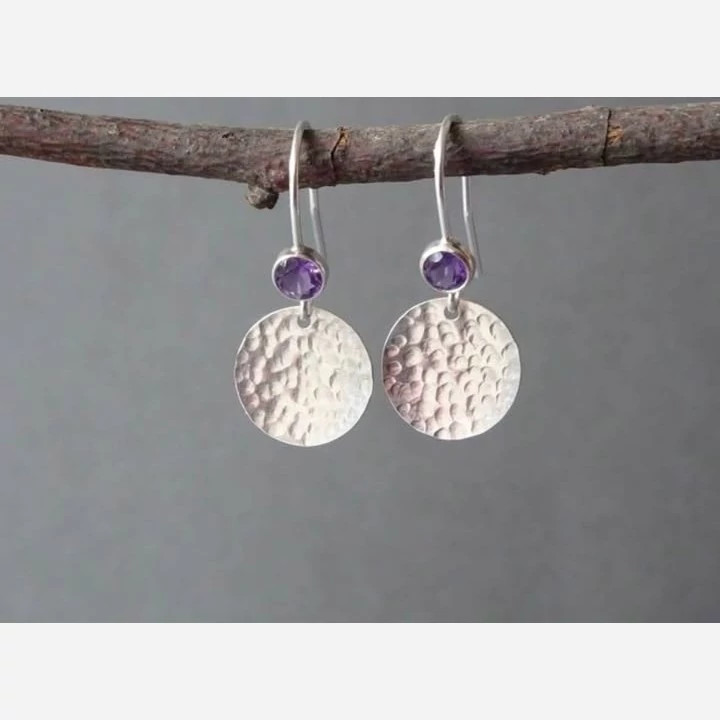 گوشواره نقره زنانه کارشده با نقره عیار 925 و نگین امیتیس طبیعی