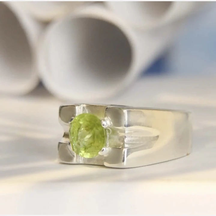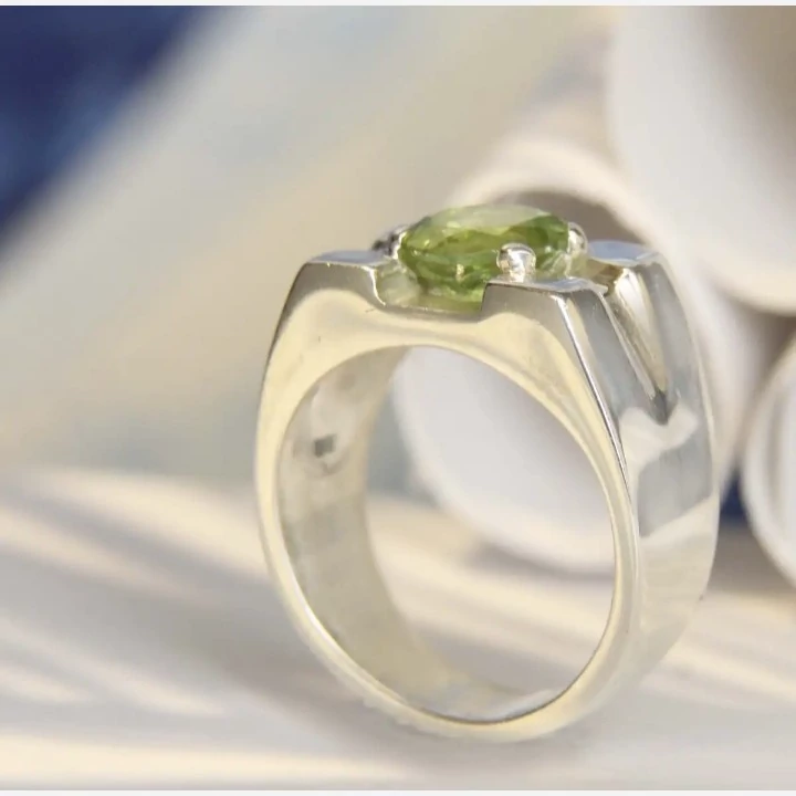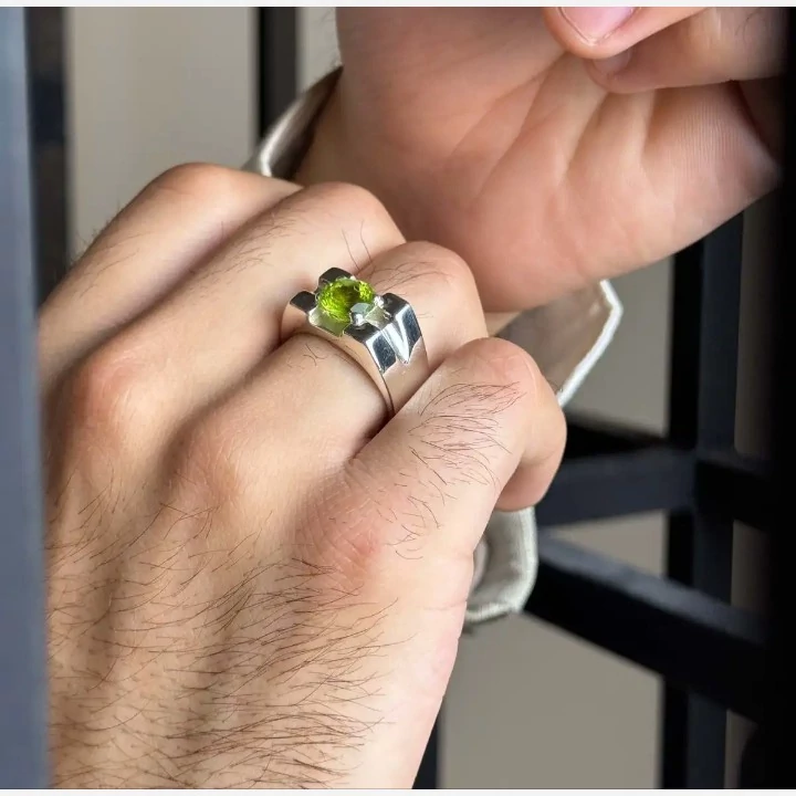 انگشتر مردانه زبرجد طبیعی رکاب نقره عیار 925 کاملا دست ساز طرح انگشتر بسیار ساده و شیک مناسب اقایان شیک پسند مناسب هدیه به عزیزانتان نگین خانه زیبا ساخته شده توسط استاد ماهر در زمینه نقره سازی نگین زبرجد طبیعی و معدنی وزن انگشتر 15.6 گرم میباشد