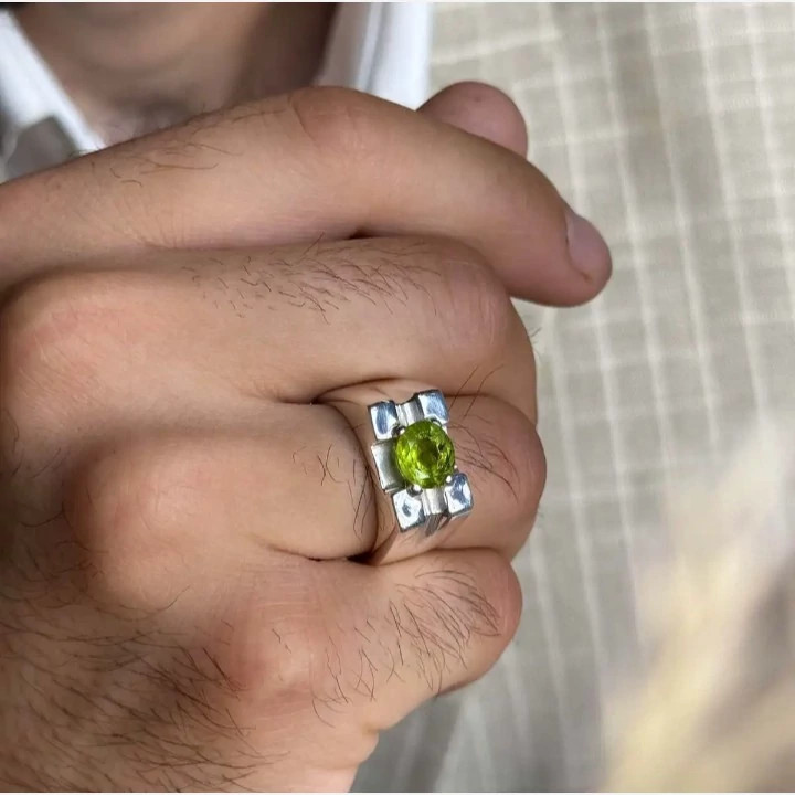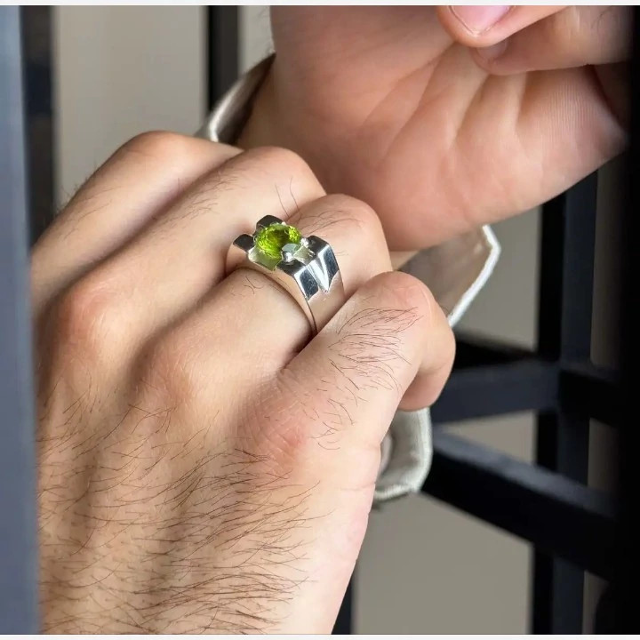 انگشتر مردانه زبرجد طبیعی رکاب نقره عیار 925 کاملا دست ساز