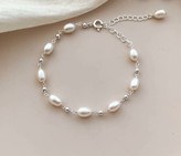دستبند گوی و مروارید پرورشی طبیعی و نقره ۹۲۵