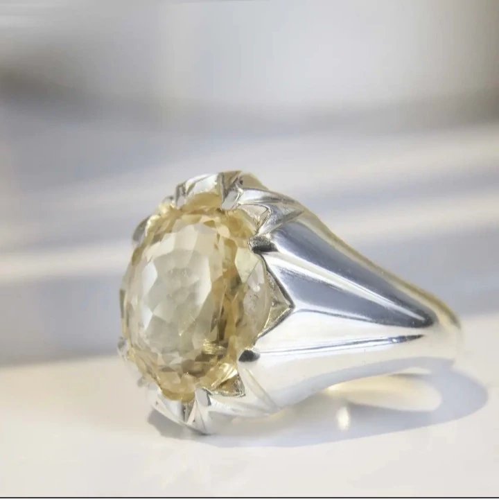 انگشتر سیترین طبیعی رکاب نقره عیار 925 کاملا دست ساز