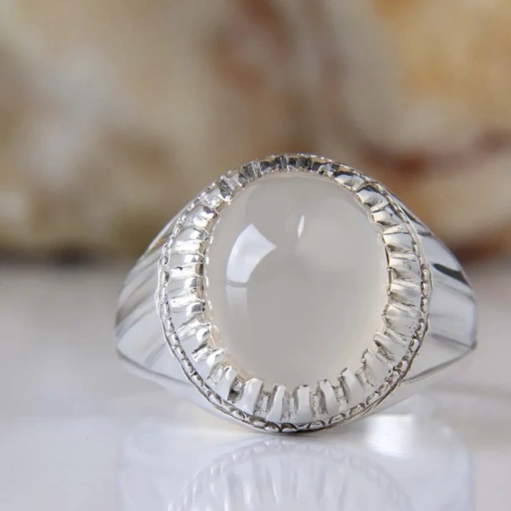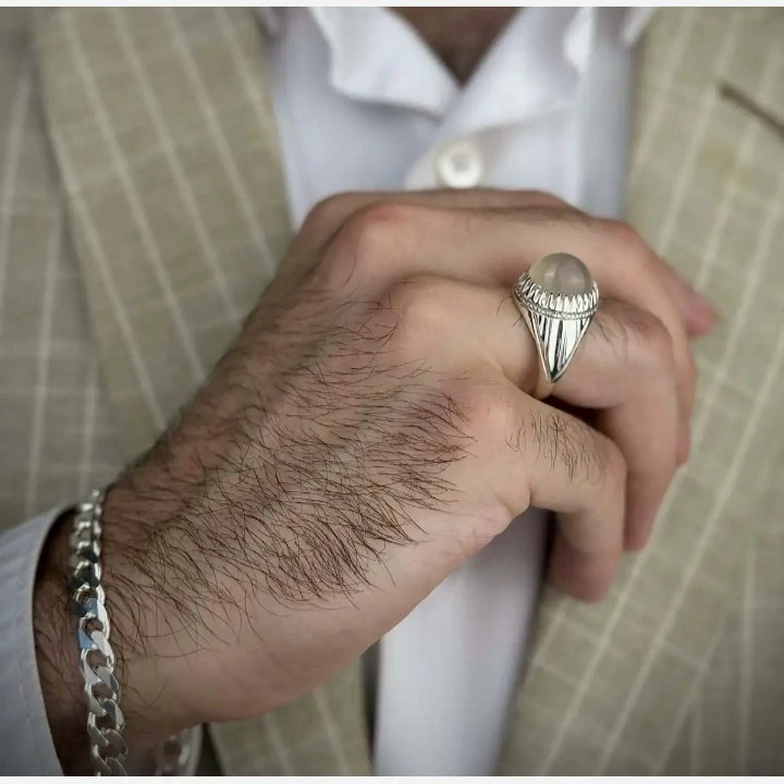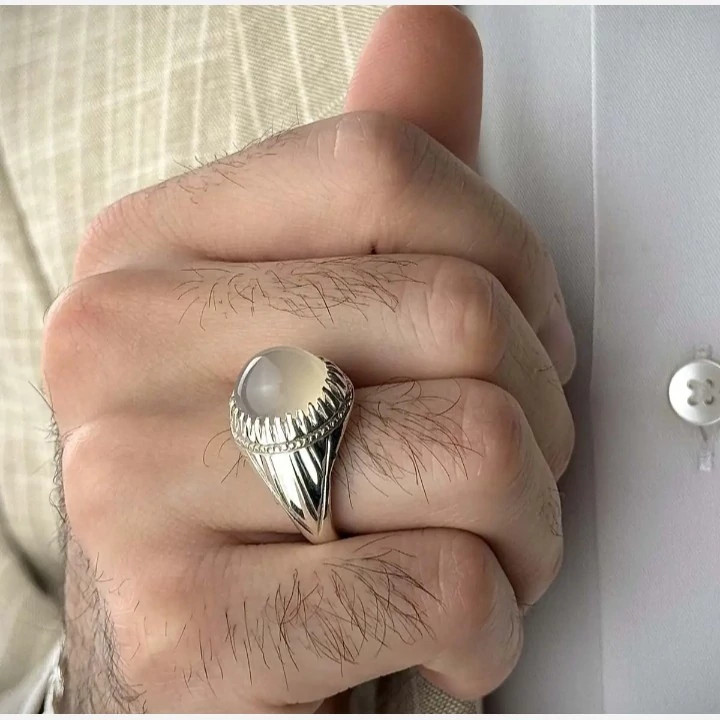 انگشتر مردونه عقیق سلیمانی رکاب نقره عیار 925 کاملا دست ساز
