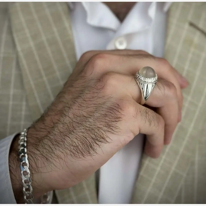 انگشتر مردونه عقیق سلیمانی رکاب نقره عیار 925 کاملا دست ساز