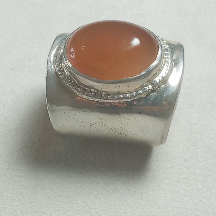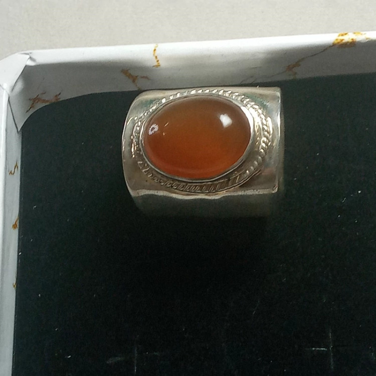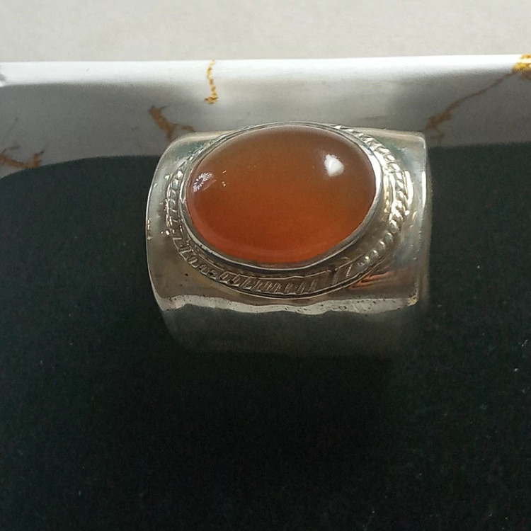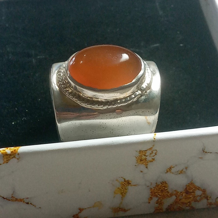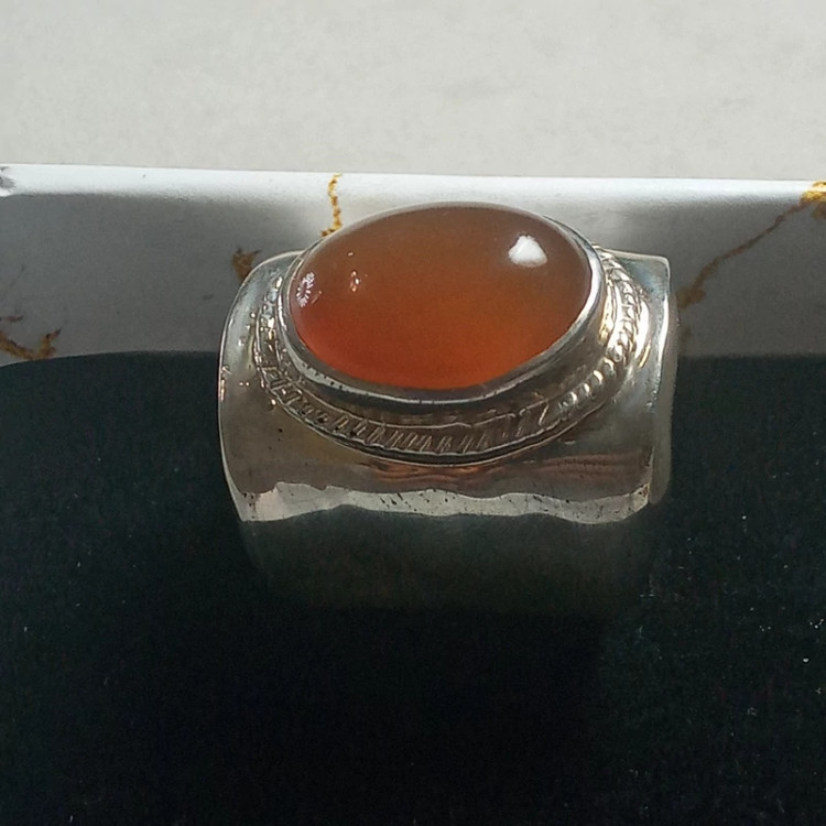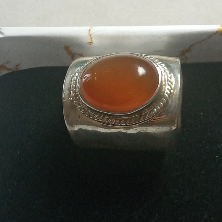 انگشتر نقره مردانه نگین عقیق پرتقالی بسیار ساده و شیک