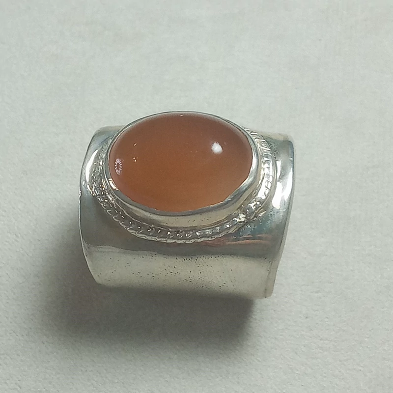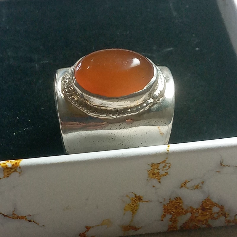 انگشتر نقره مردانه نگین عقیق پرتقالی بسیار ساده و شیک