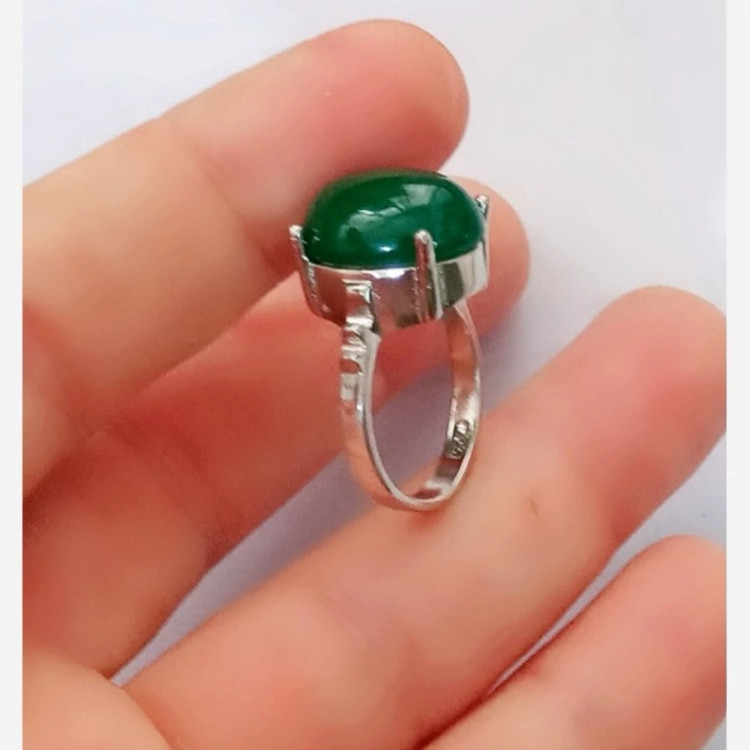انگشتر عقیق سبز زیبا زنانه بسیار زیبا مدل رکاب ساده نگین خانه چهارچنگ
