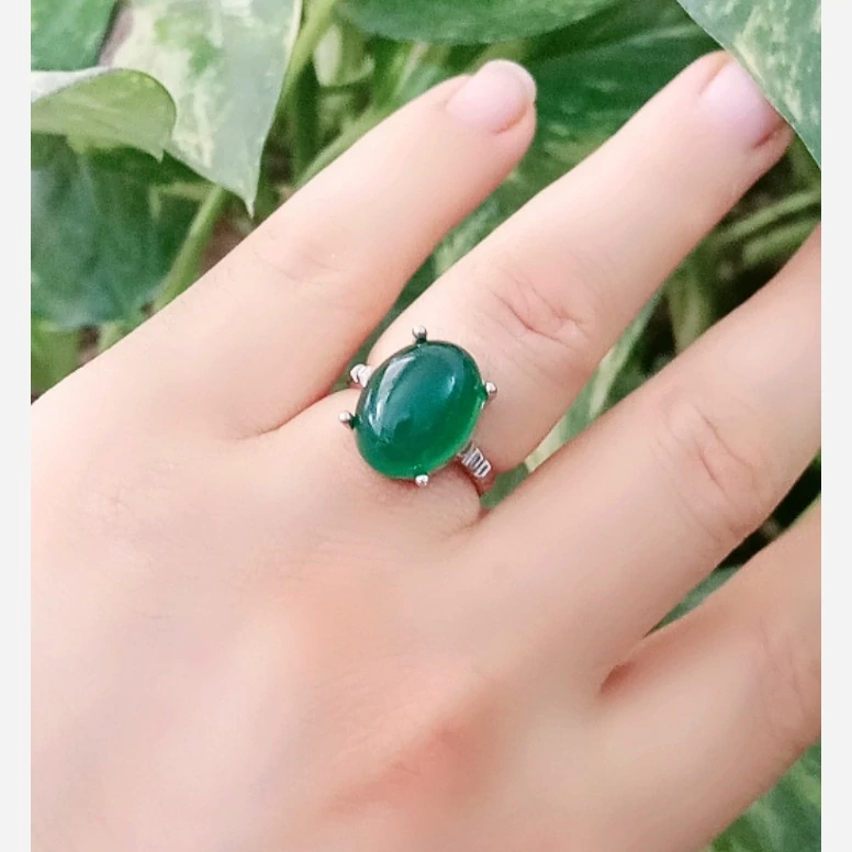 انگشتر عقیق سبز زیبا زنانه بسیار زیبا مدل رکاب ساده نگین خانه چهارچنگ