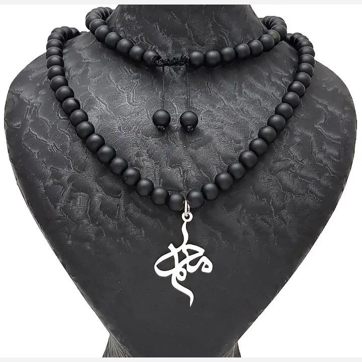 پلاک گردن بند اسم محمد نقره به همراه بند از جنس اونیکس طرح بسیار زیبا