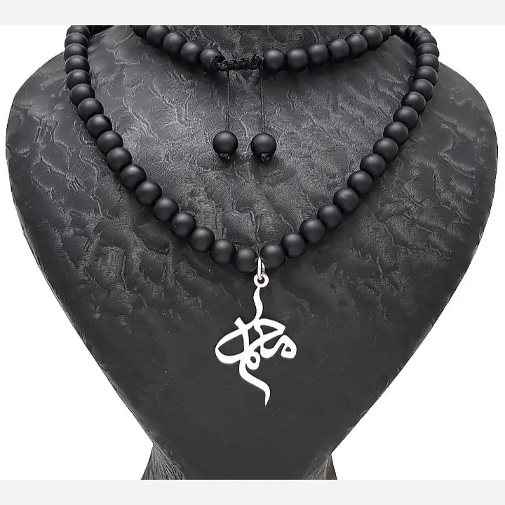 پلاک گردن بند اسم محمد نقره به همراه بند از جنس اونیکس طرح بسیار زیبا