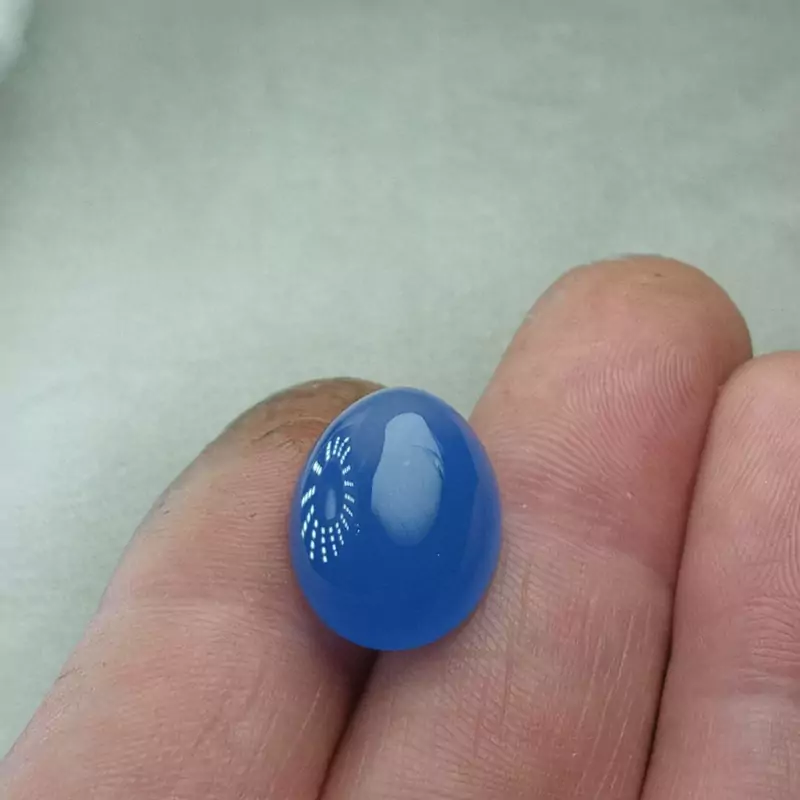 عقیق آبی پررنگ تراش دامله بسیار خوشرنگ و زیبا مصور دارای یه تیکه لکه سفید سفاف
