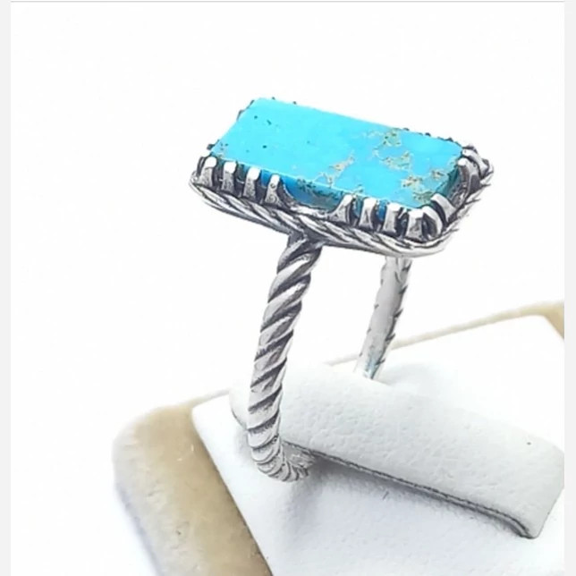 انگشتر فیروزه زیبا زنانه بسیار زیبا مدل رکاب پیچ دار