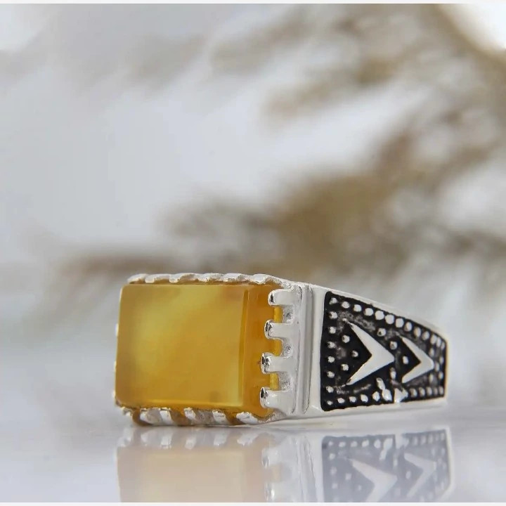 انگشتر مردانه طرح صفوی نگین عقیق زرد رکاب نقره عیار 925
