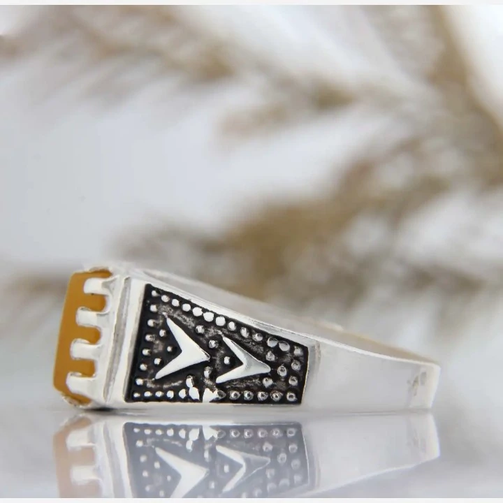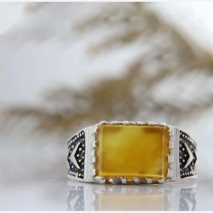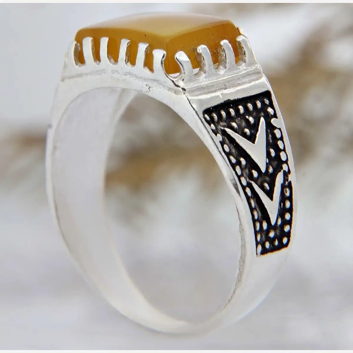 انگشتر مردانه طرح صفوی نگین عقیق زرد رکاب نقره عیار 925
