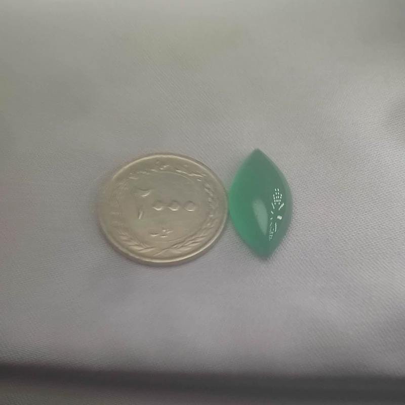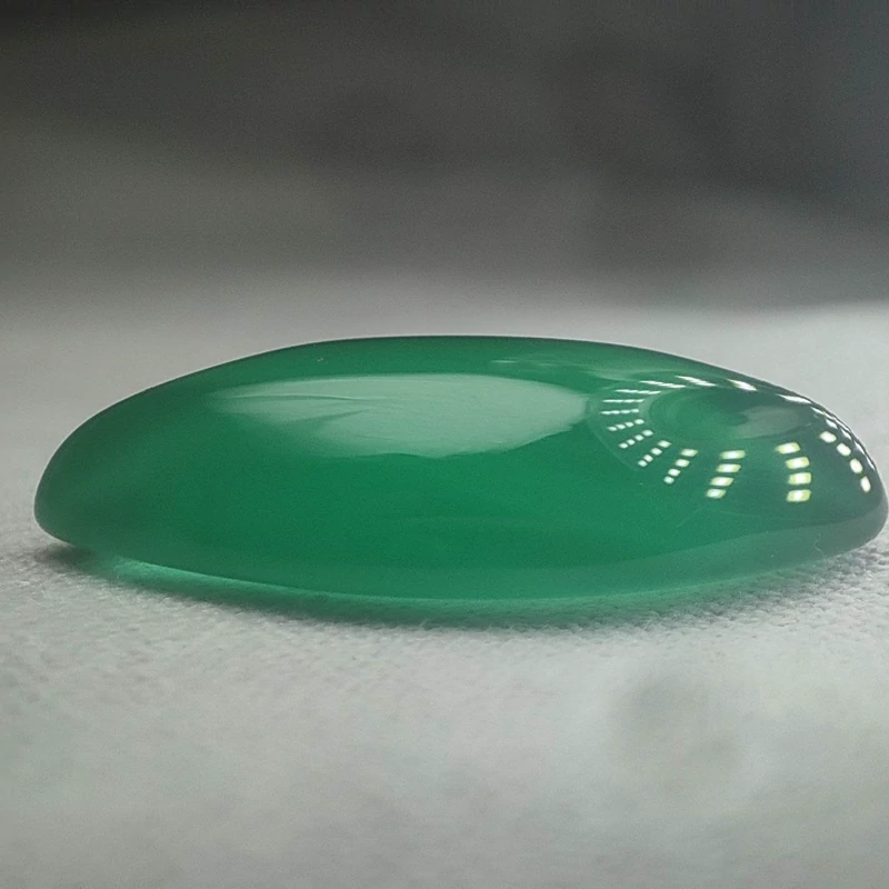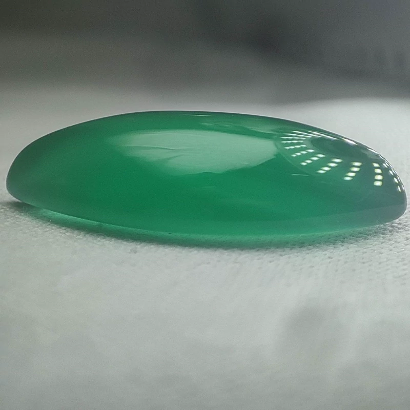 نگین عقیق سبز معدنی رنگ شارژ ابدار و شفاف بافت شیشه ای و زجاجی فرم چشمی