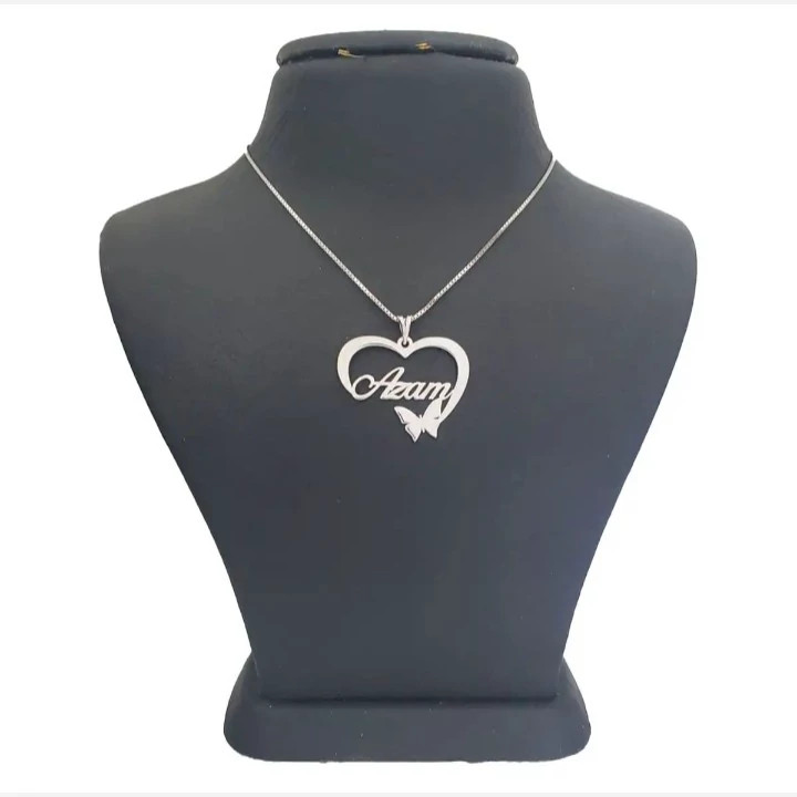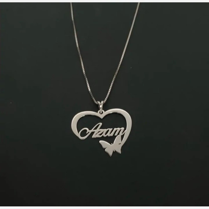 گردنبند نقره طرح قلب و پروانه اسم اعظم همراه با زنجیر نقره عیار 925