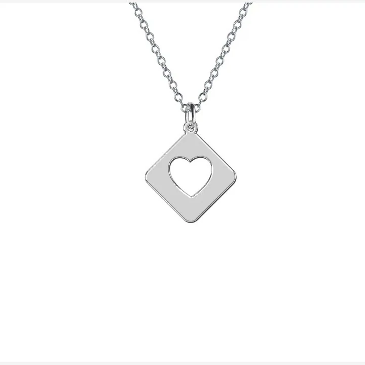 گردنبند نقره زنانه طرح لوزی و قلب همراه با زنجیر نقره عیار 925 طرح زیبا و جدید مدل لوزی و برش شکل قلب خورده در آن وزن حدودی گردنبند 3 گرم میباشد