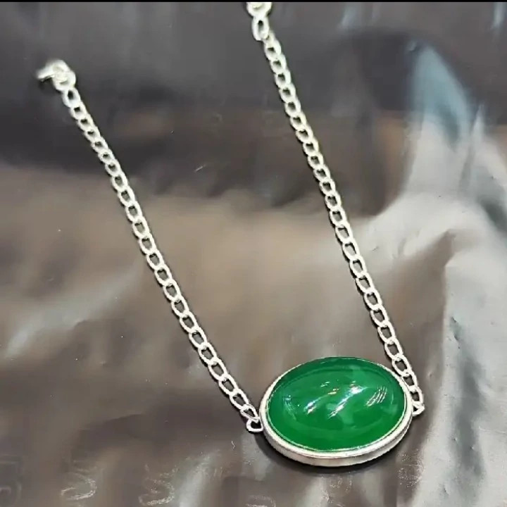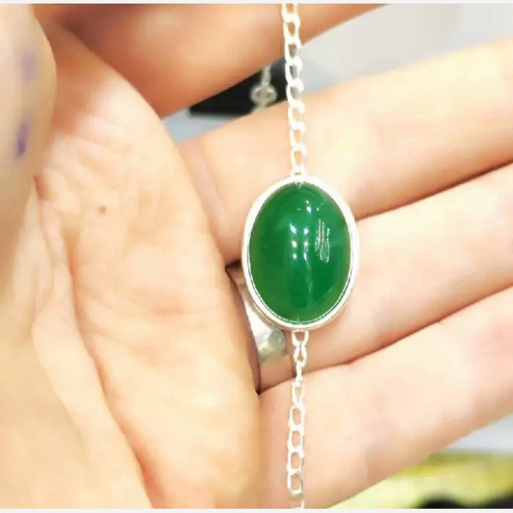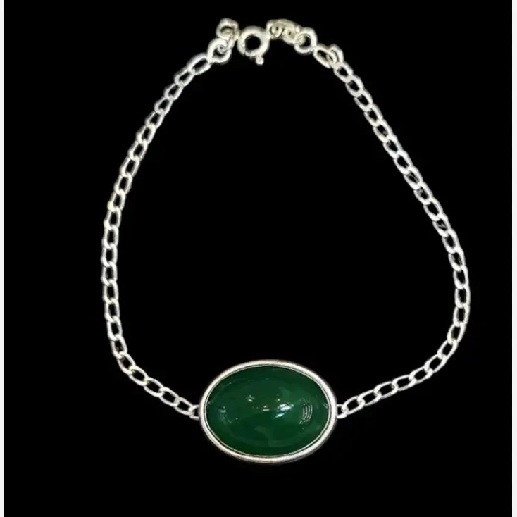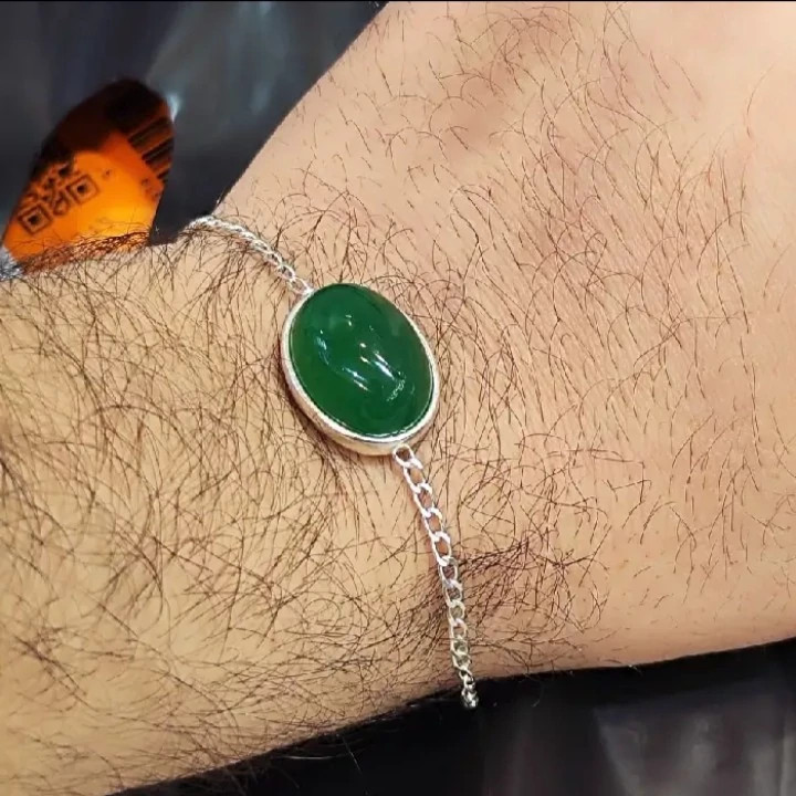 دستبند نقره مردانه کارشده با نگین عقیق سبز تراش دامله و نقره عیار 925