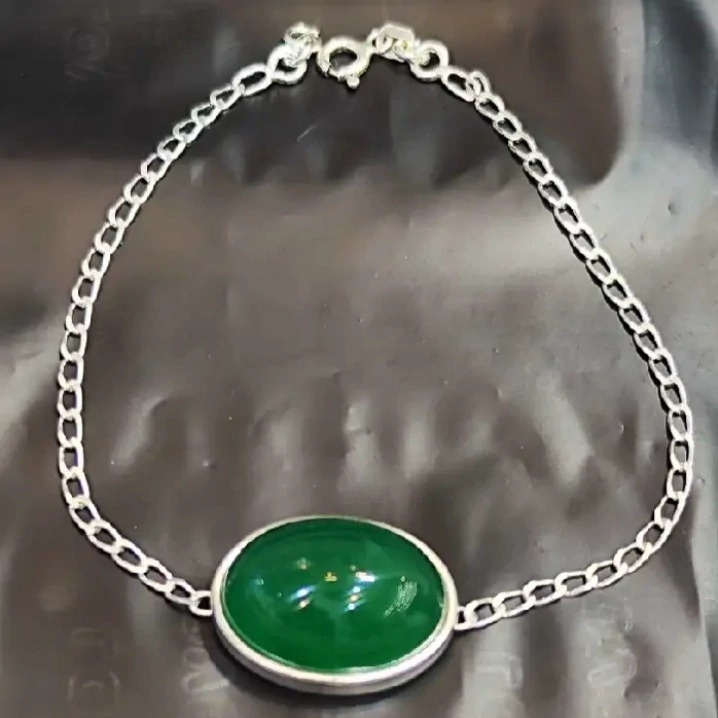 دستبند نقره مردانه کارشده با نگین عقیق سبز تراش دامله و نقره عیار 925