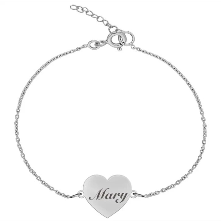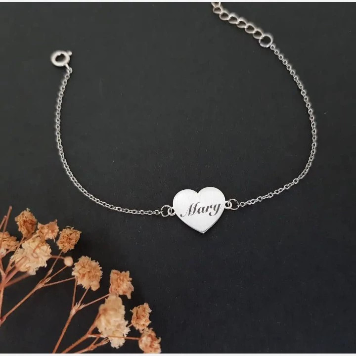 طرح لیزری حکاکی شده اسم ماری برروی قلب و زنجیر نقره
