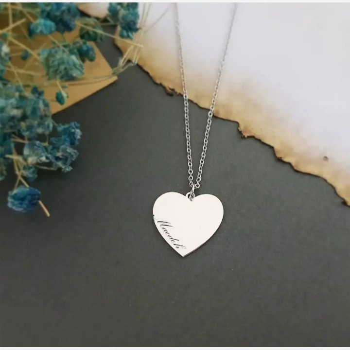 گردنبند نقره مدل قلب با حکاکی اسم به دلخواه شما
