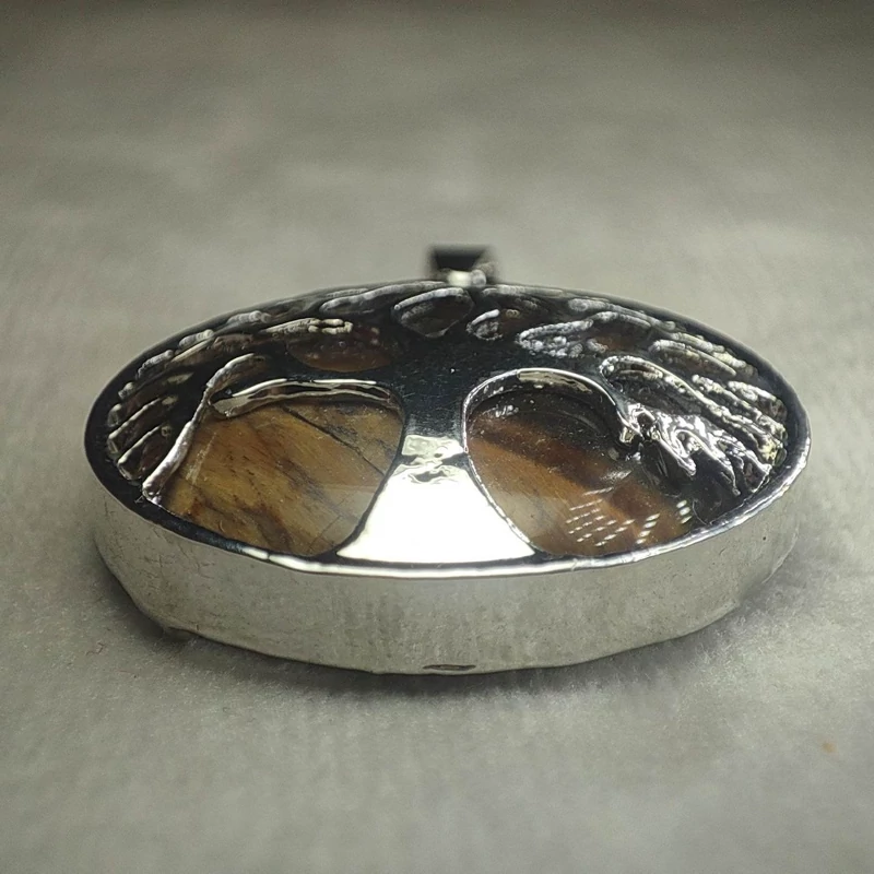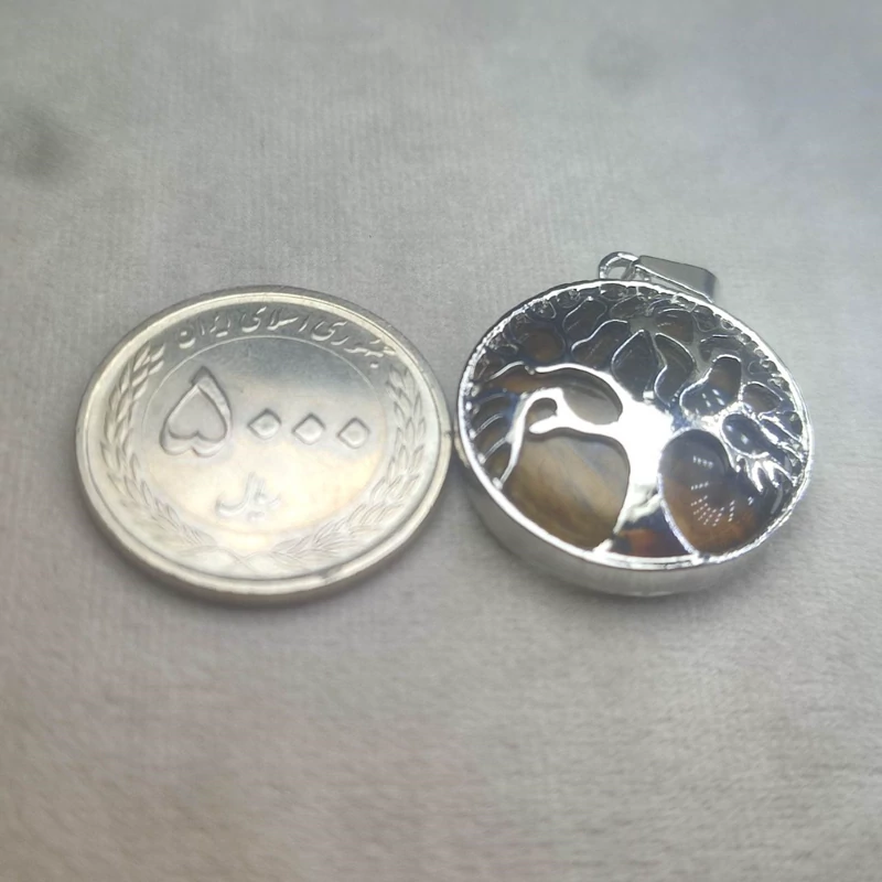 اویز گردنی درخت زندگی،باچشم ببر معدنی،قاب استیل رنگ ثابت