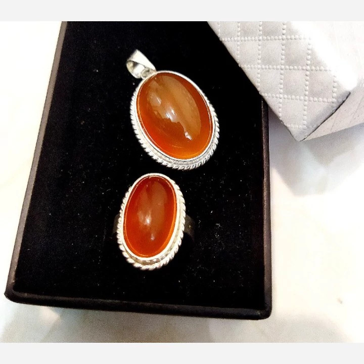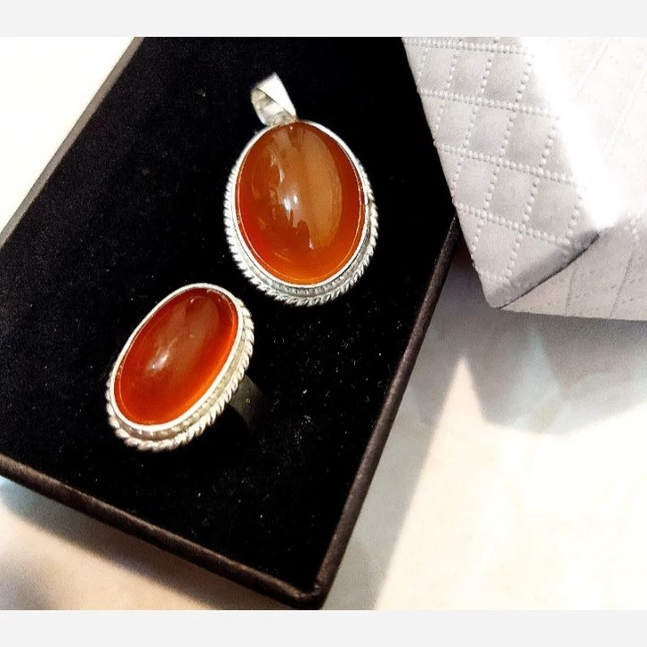 نیمست عقیق خراسانی کارشده با نقره عیار 925