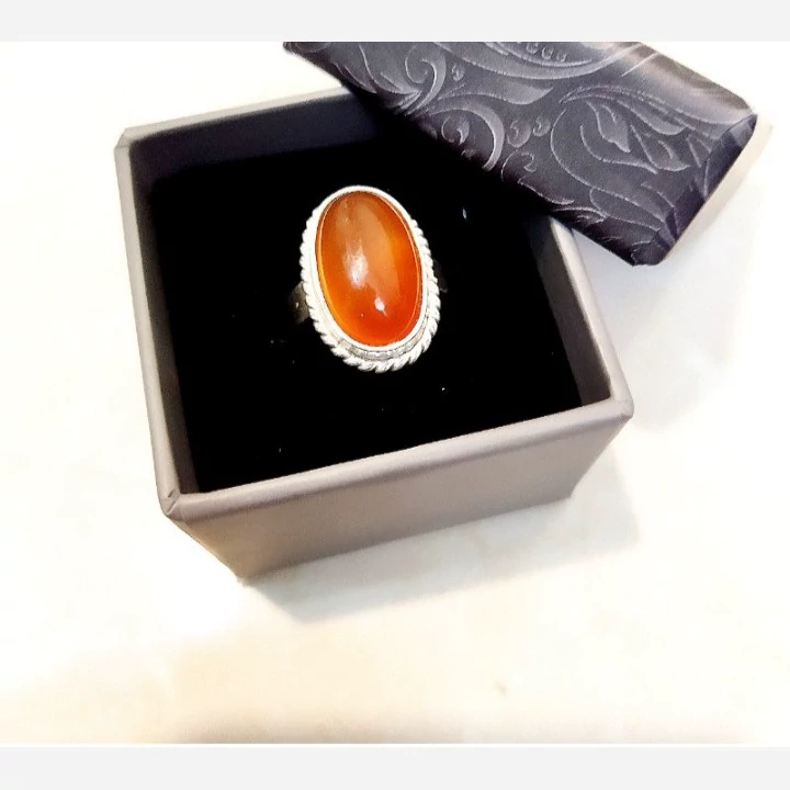 نیمست عقیق خراسانی کارشده با نقره عیار 925