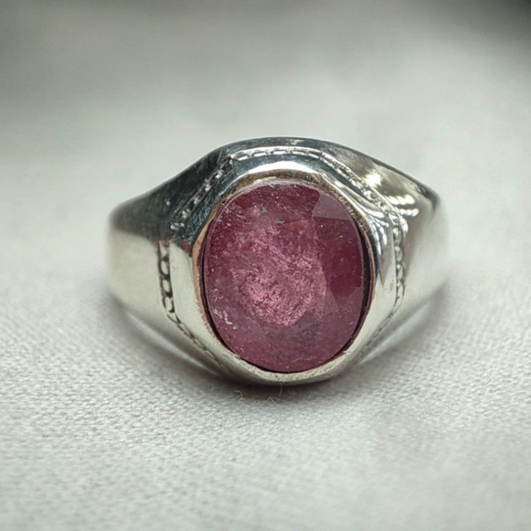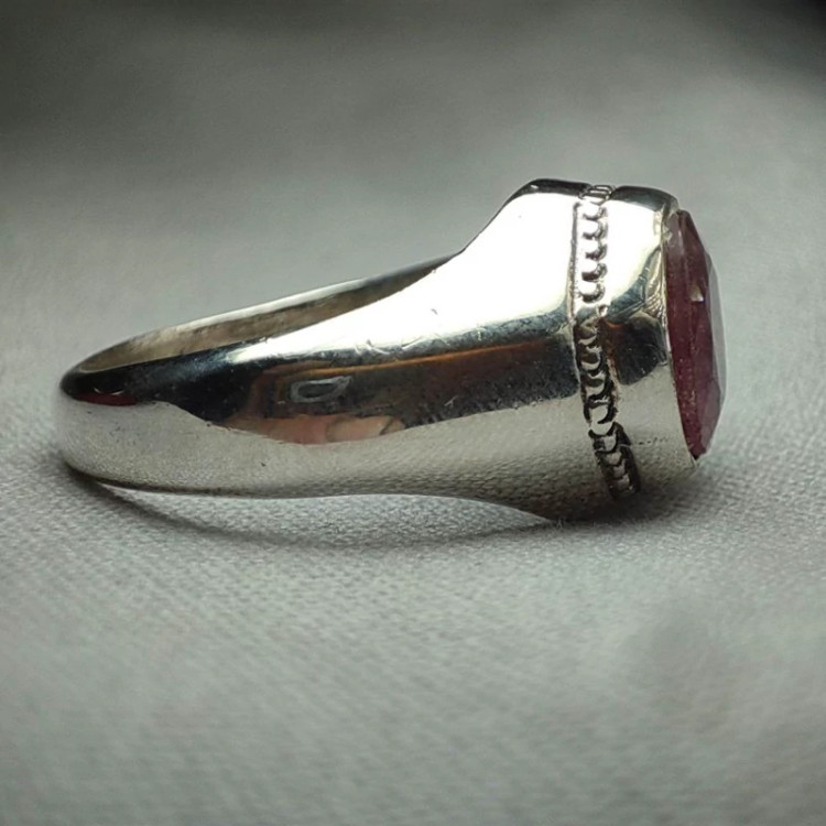 انگشتر مردانه یاقوت ارغوانی طبیعی معدنی رکاب نقره عیار بالا
