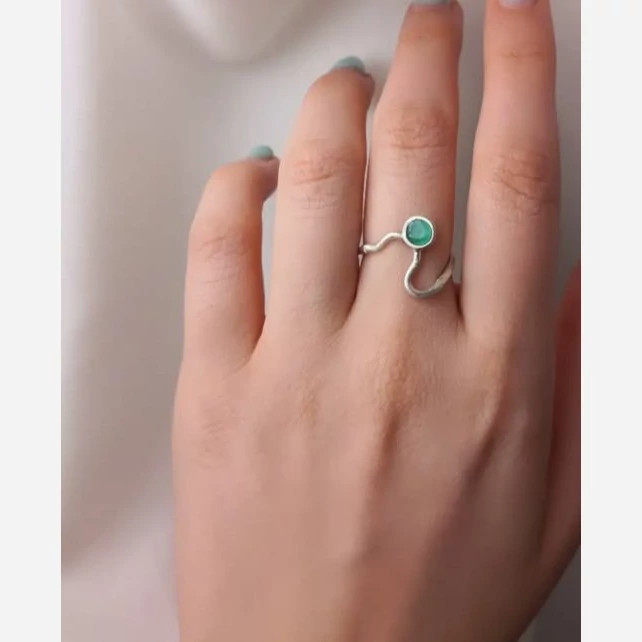 انگشتر زنانه نگین زمرد طبیعی بسیار زیبا کاملا دست ساز
