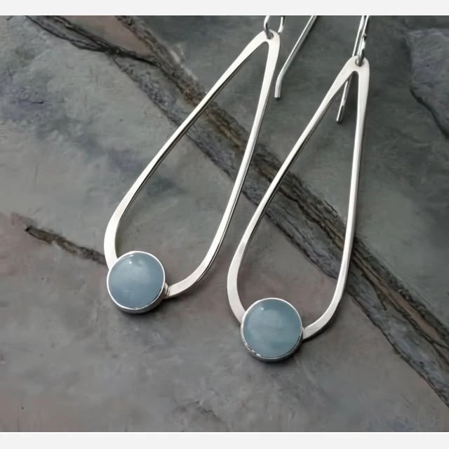 نگین های اکوامارین طبیعی و معدنی کار شده در این گوشواره به شکل گرد بسیار زیبا و خوشرنگ میباشند