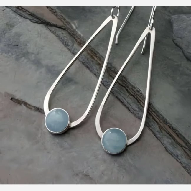 نگین های اکوامارین طبیعی و معدنی کار شده در این گوشواره به شکل گرد بسیار زیبا و خوشرنگ میباشند
