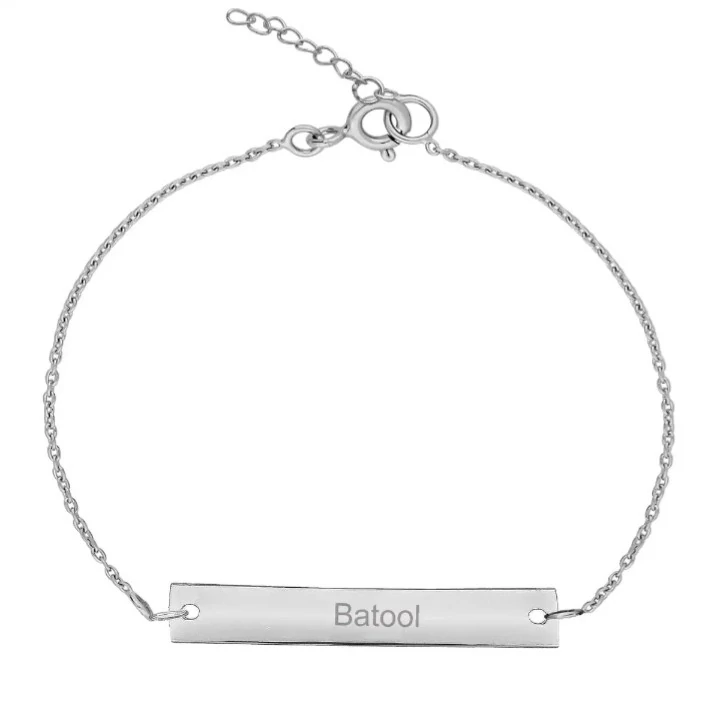 طرح لیزری حکاکی شده اسم بتول برروی مستطیل و زنجیر نقره