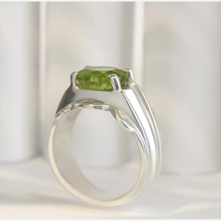 انگشتر زبرجد طبیعی مردانه رکاب طرح دار بسیار شیک